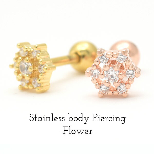 【 ステンレスボディピアス 花 ゴールド ピンク 】 シンプル 小ぶり フラワー お花 複数付け 小さい 耳 おへそ ピアス サージカルステンレス ストーン キラキラ かわいい キャッチ付き おしゃれ ラインストーン 上品 目立つ 女性らしい 華やか