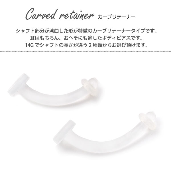 ボディピアス 14G バイオフレキシブルグロウへそピアス / バナナバーベル 14ゲージ へそピアス かわいい アクリル ネイブル 樹脂 BIO PTFE 光る 柔らかい カーブド シンプル