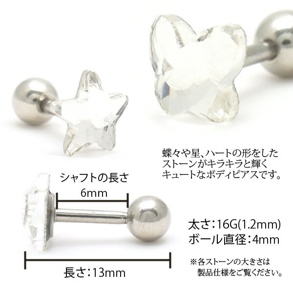 【 ステンレスボディピアス 星 ハート 蝶々 】 シンプル 小ぶり ほし ホシ ちょうちょ バタフライ 複数付け 小さい 耳 おへそ ピアス サージカルステンレス ストーン 透明ストーン クリアストーン キラキラ かわいい キャッチ付き おしゃれ ラインストーン