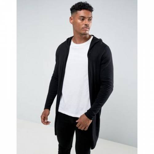 黒 ブラック メンズファッション トップス カーディガン 【 BLACK ASOS DESIGN HOODED OPEN FRONT CARDIGAN WITH CURVED HEM IN 】