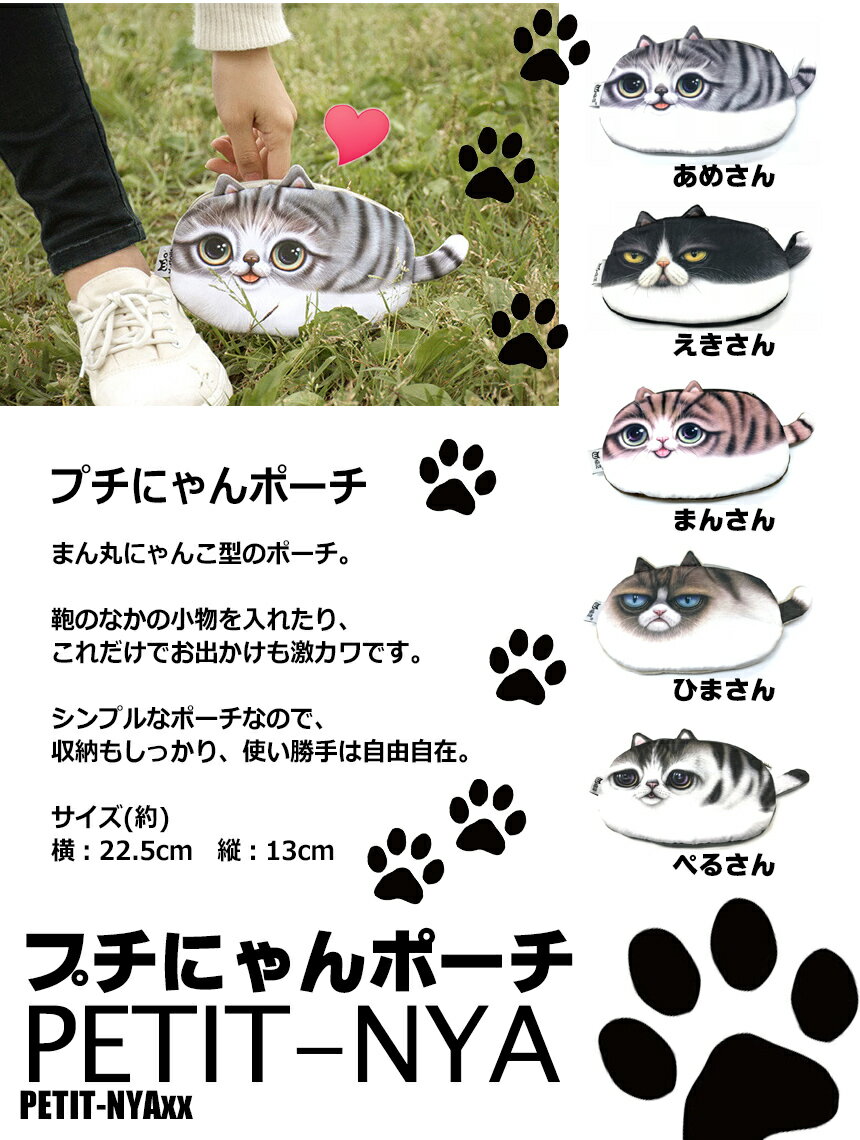 ■商品説明 プチにゃんポーチまん丸にゃんこ型のポーチ。